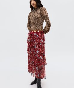 Rixo Women’s Taryn Midi Skirt | Butterfly Floral Burgundy