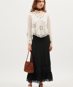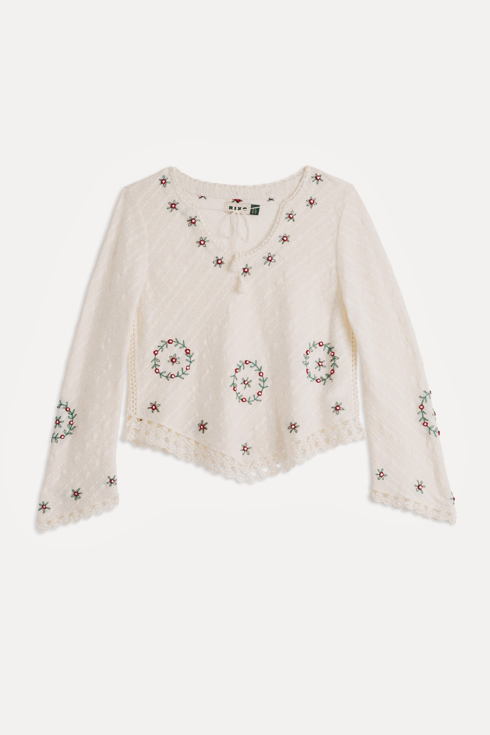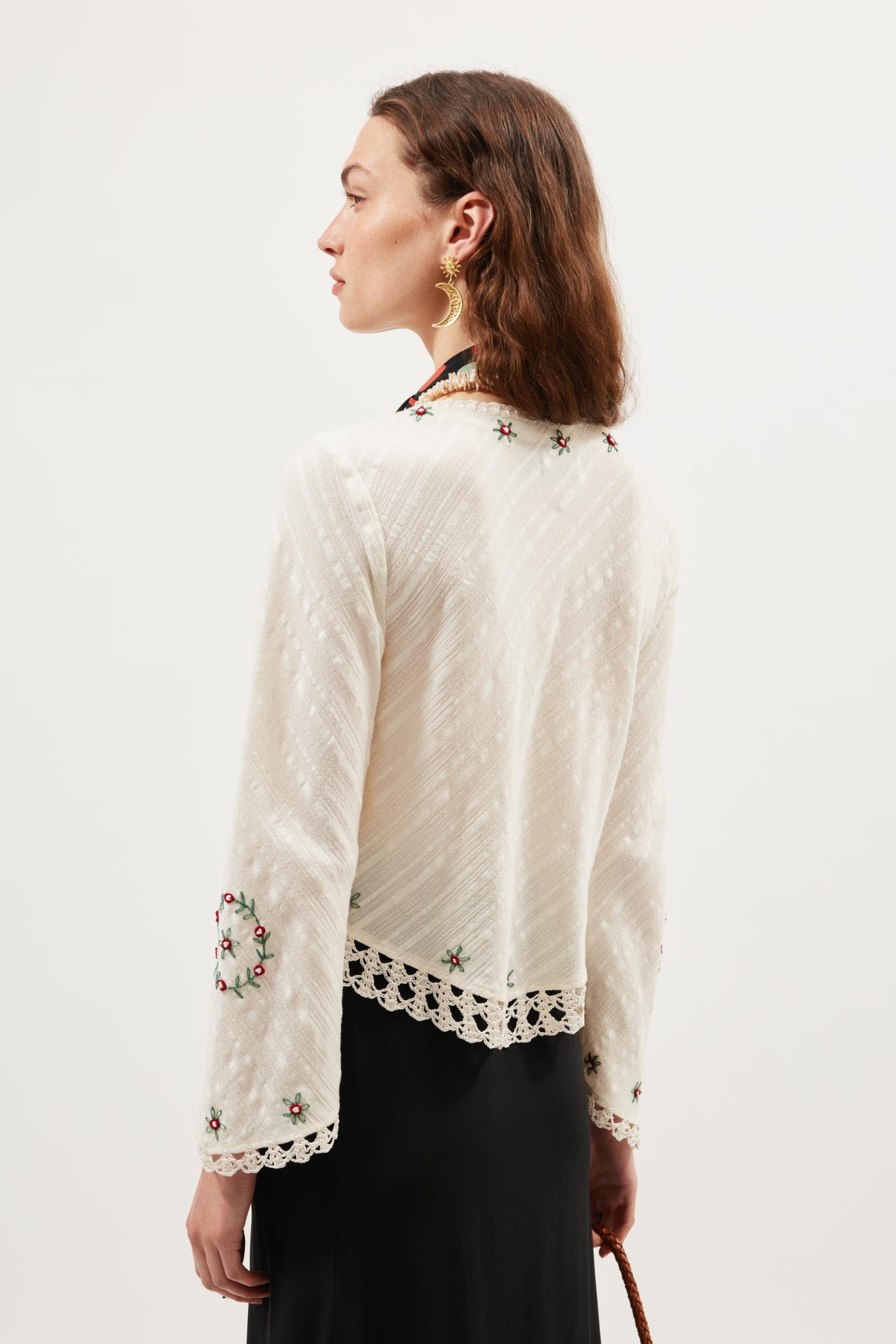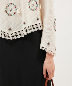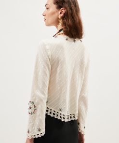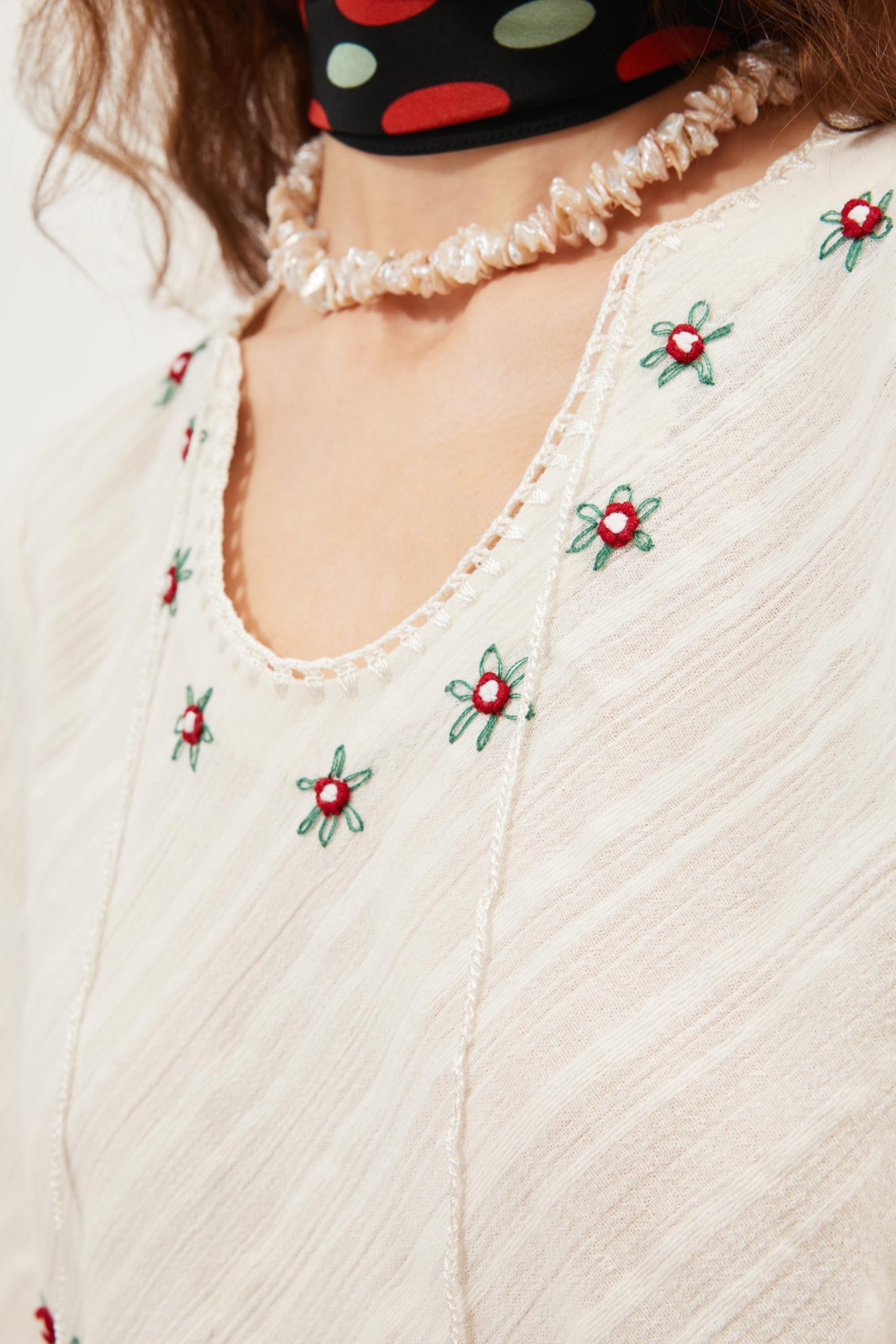Product detailsDetailsThis cotton-seersucker Annalisa top has a subtle woven stripe through it. The trims are crocheted by hand and the floral embroidery placed for the perfect finish.Fit