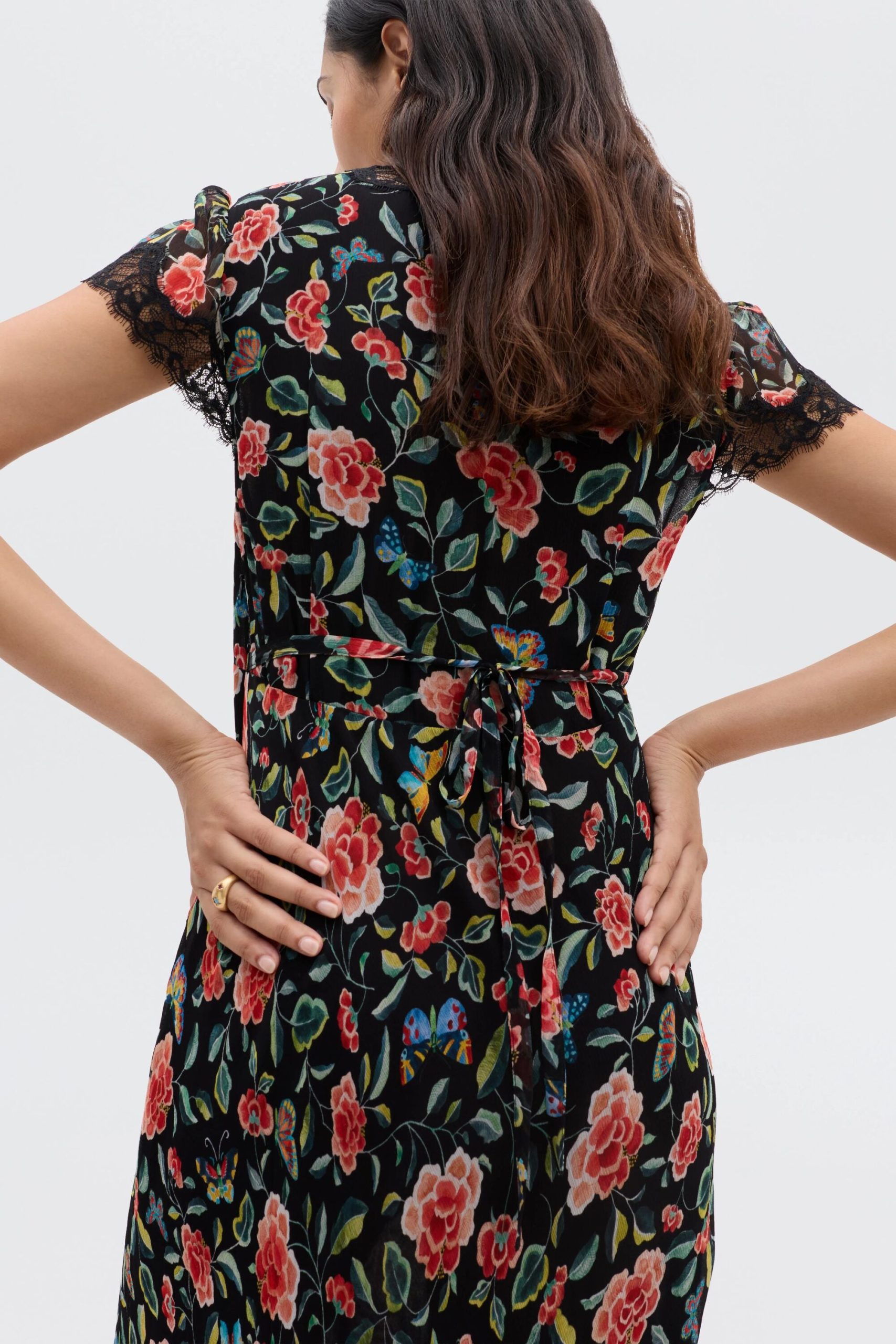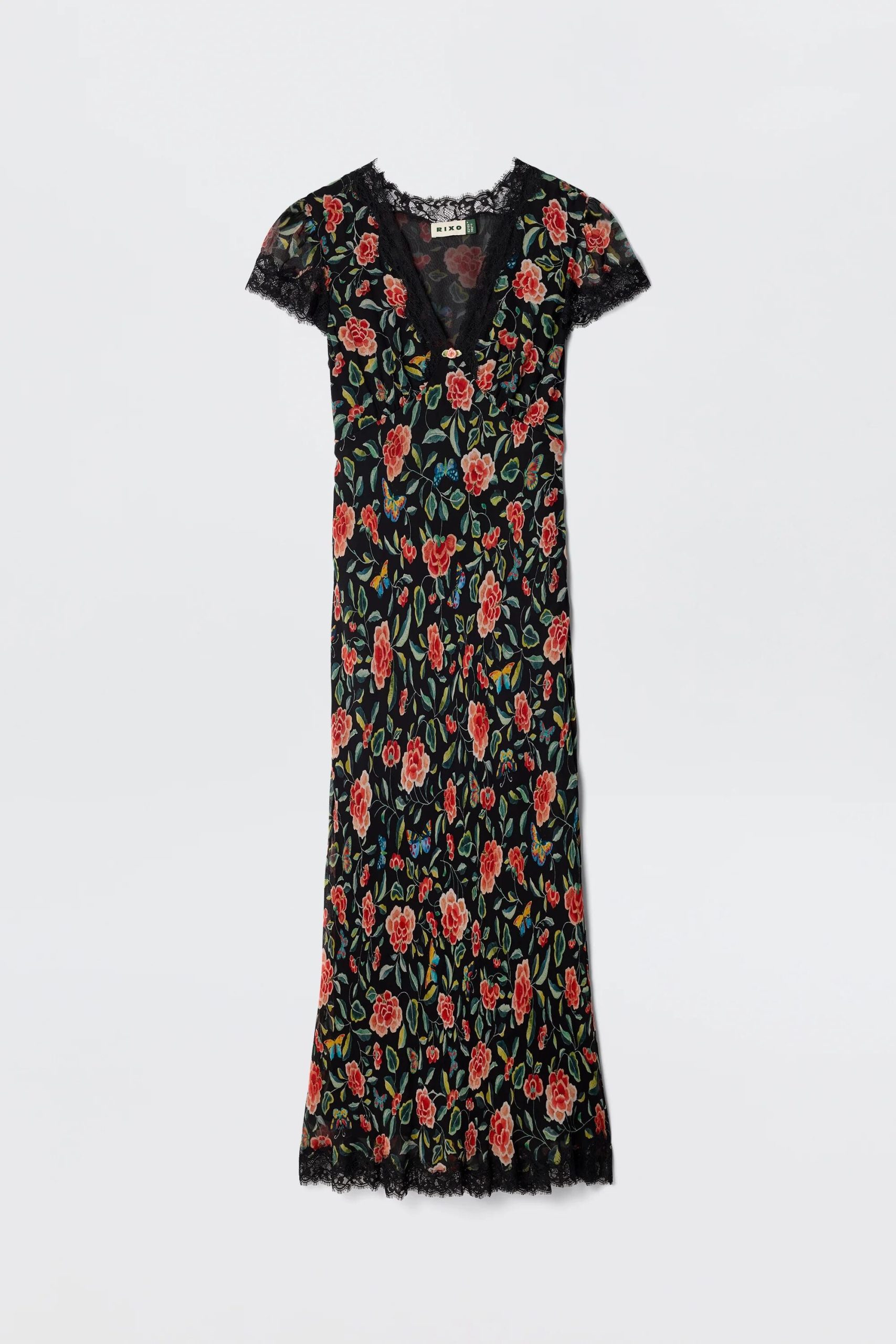 Product detailsDetailsClarice is based on a vintage nightdress and one of our RIXO icons. Our Butterfly Floral print is cut from a beautiful crinkle chiffon with a romantic drape and an elevated feel, so it works for nights out as well as the magic everyday moments.Fit
