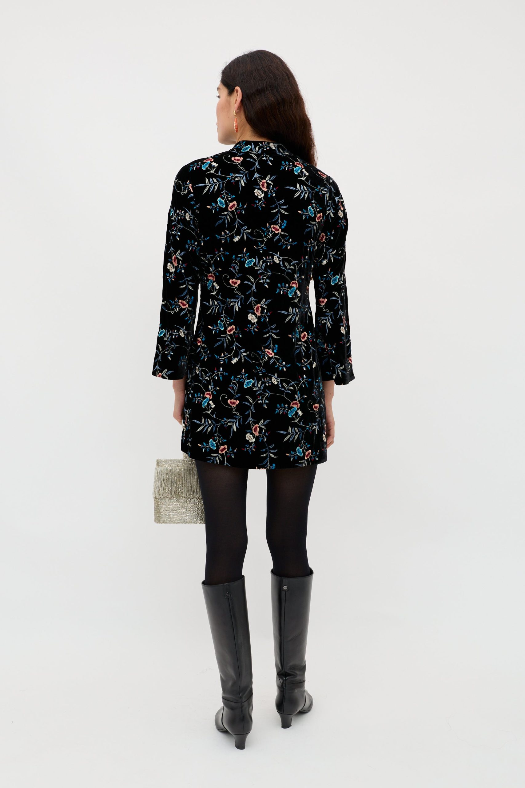 Rixo Women’s Delphina Mini Dress | Botanical Embroidery Black