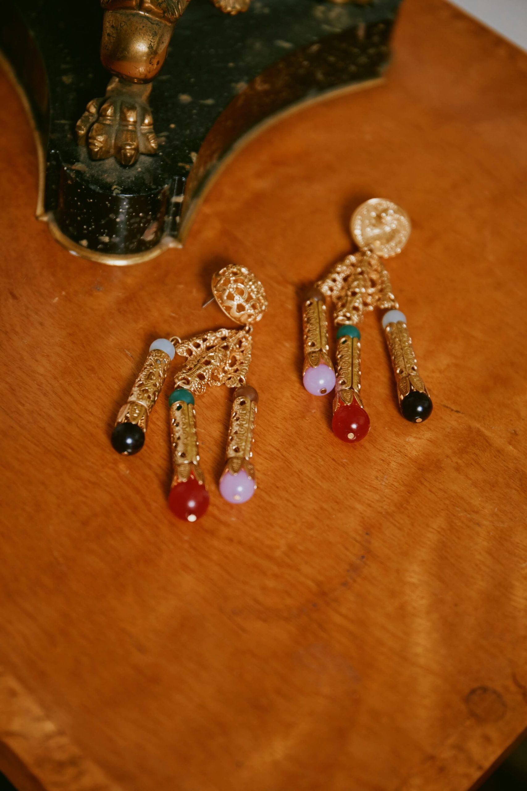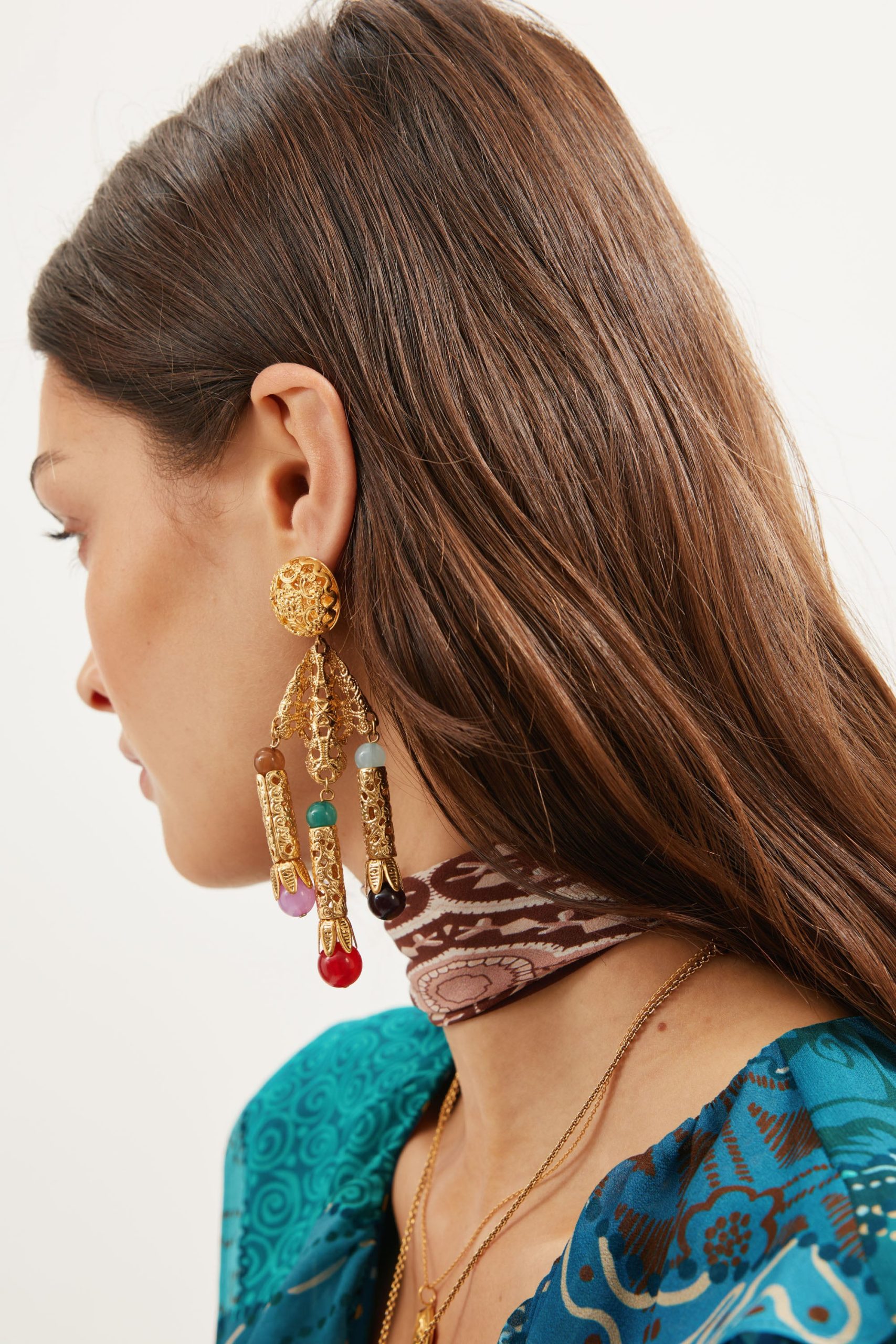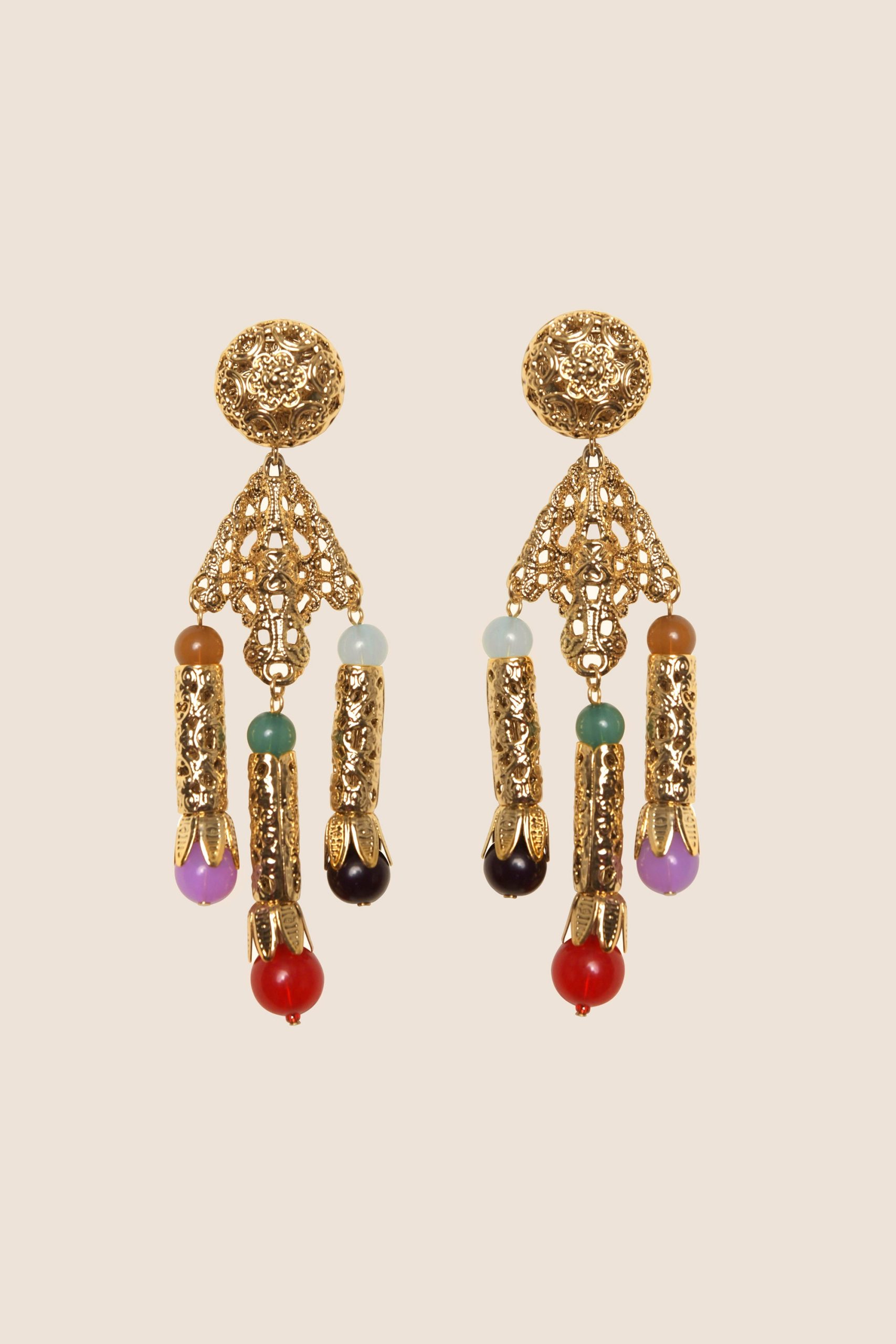 Product detailsDetailsThese statement Divina earrings are inspired by a vintage pair of Orlagh’s that she loves using on RIXO shoots. Deceptively lightweight thanks to the hollowed 18-karat gold-plated design, they have translucent resin beads for a welcome hit of colour.Fit