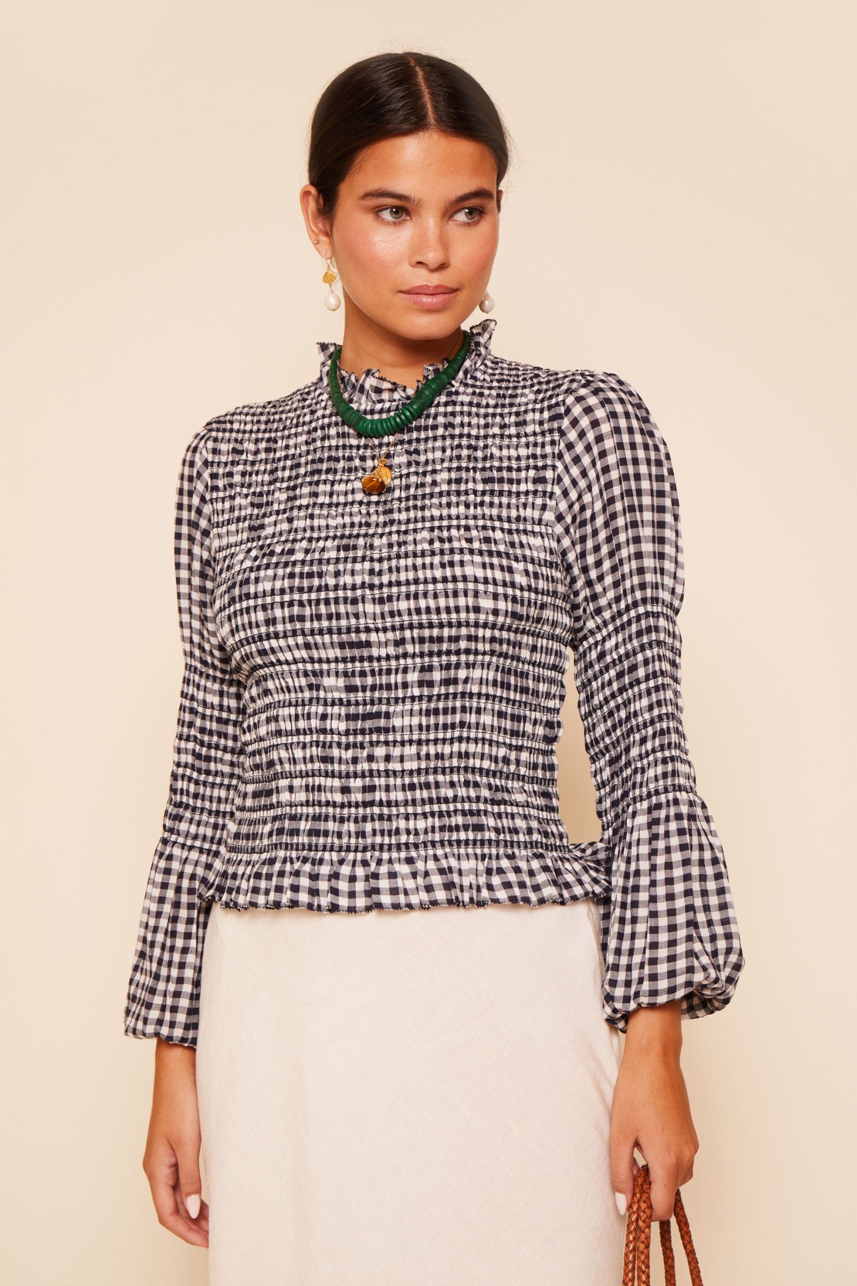 Product detailsDetailsThis Gardenia top is based on a vintage shirred blouse. Easy to dress up as well as down, it’s made from cotton-voile that feels lovely and lightweight, with smocking for structure. Tuck it in or wear it loose with jeans.Fit