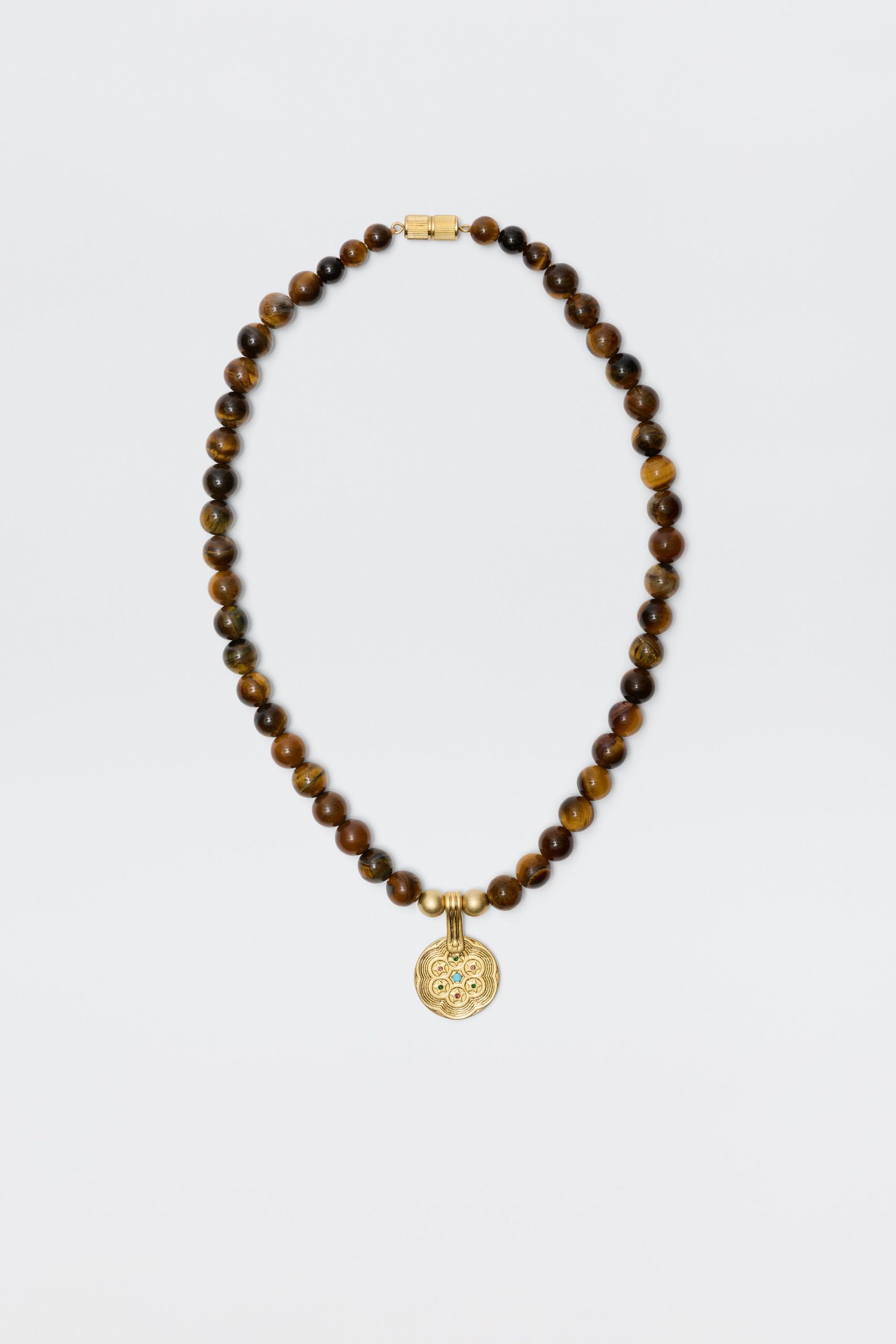 Product detailsDetailsWe’ve updated our Ischia necklace with tiger’s eye beads – the semi-precious stone has natural marbling that means every one is unique. The barrel clasp twists shut to keep it secure.Fit
