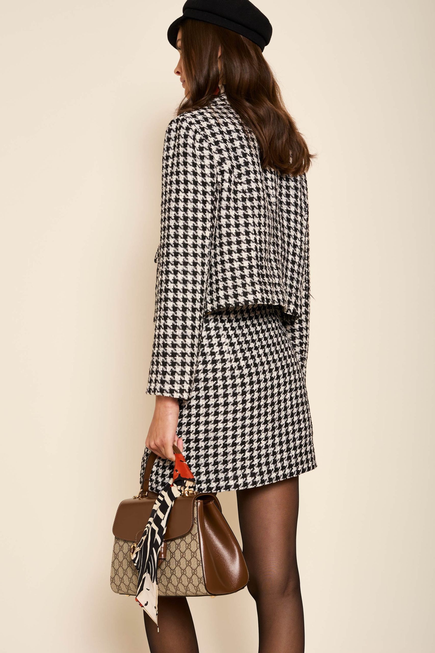 Product detailsDetailsPatterned with classic houndstooth, this Mariah mini skirt is inspired by styles from the noughties. We’ve designed a matching jacket, but we also love it worn simply with black tights and our cream Abel blouse.Fit