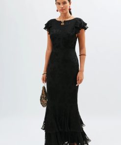 Product detailsDetailsOur most-loved Ordinia gown is a classic, made for life’s special moments. 1930s-inspired, it has with a modest low back and romantic ruffles, combining opulence and ease. The ultimate style for black-tie weddings to theatre nights out.Fit
