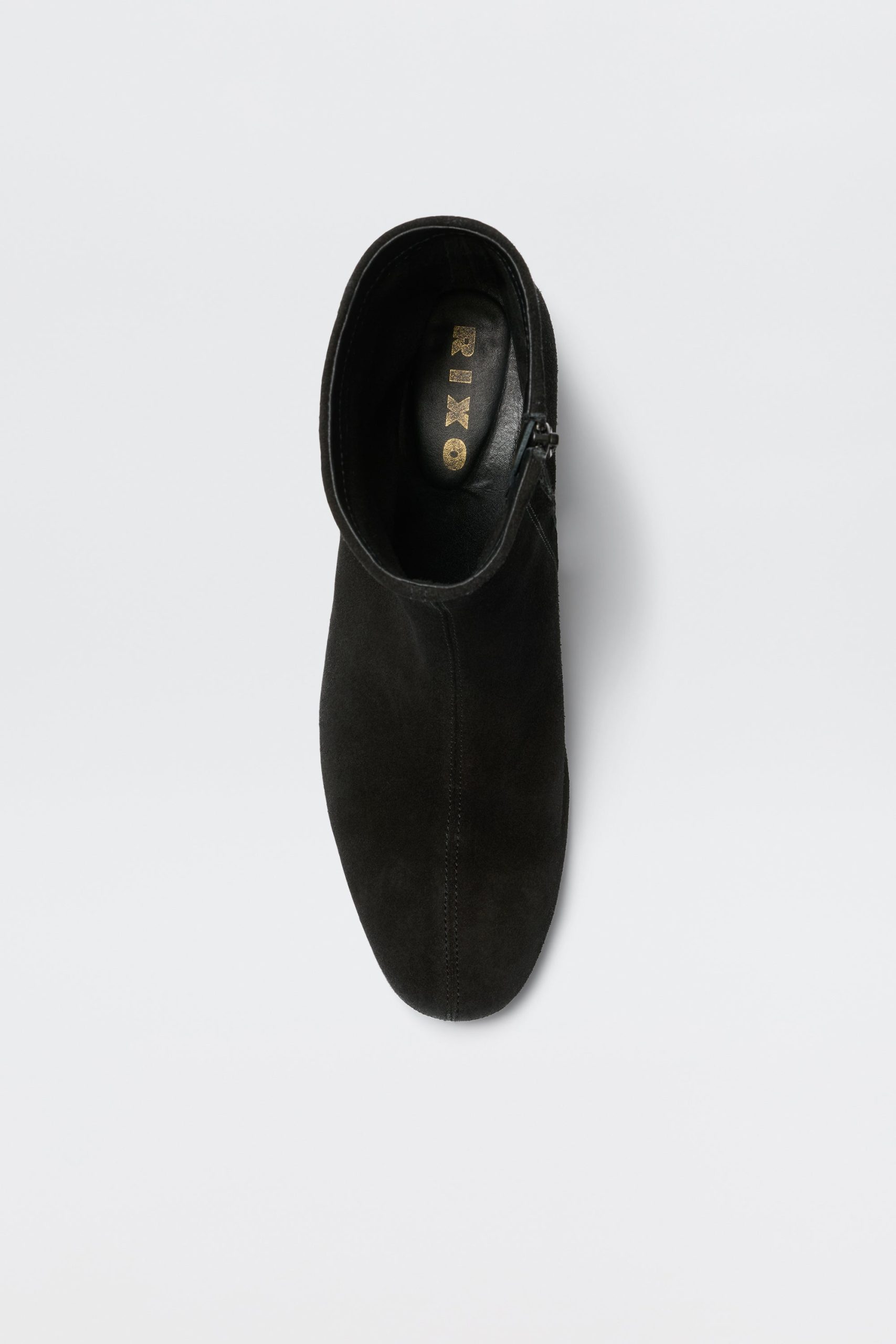 Product detailsDetailsThe perfect little vintage boots, this black suede Rey pair will go with all your dresses and jeans. We spent years perfecting the fit so they feel dainty and feminine, with the ideal heel height for both day and night.Fit