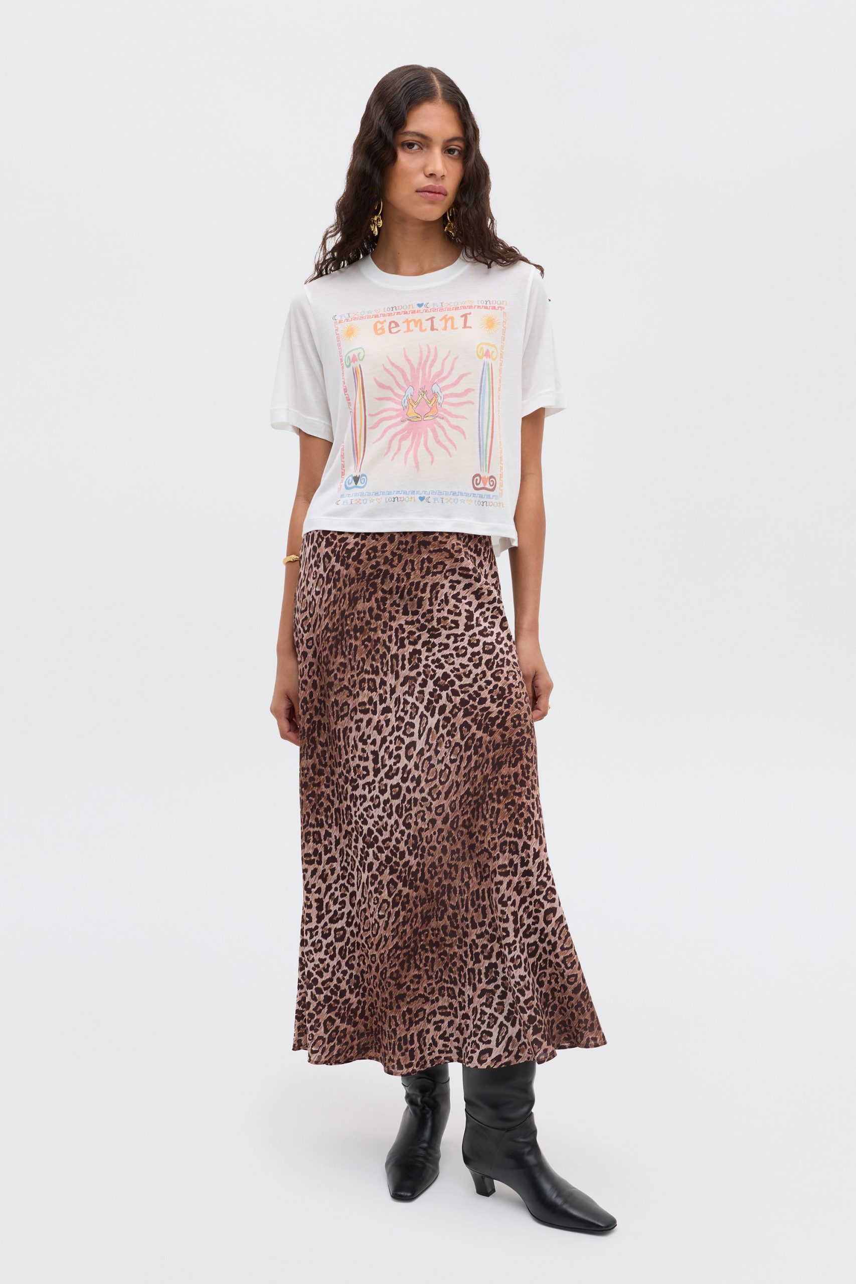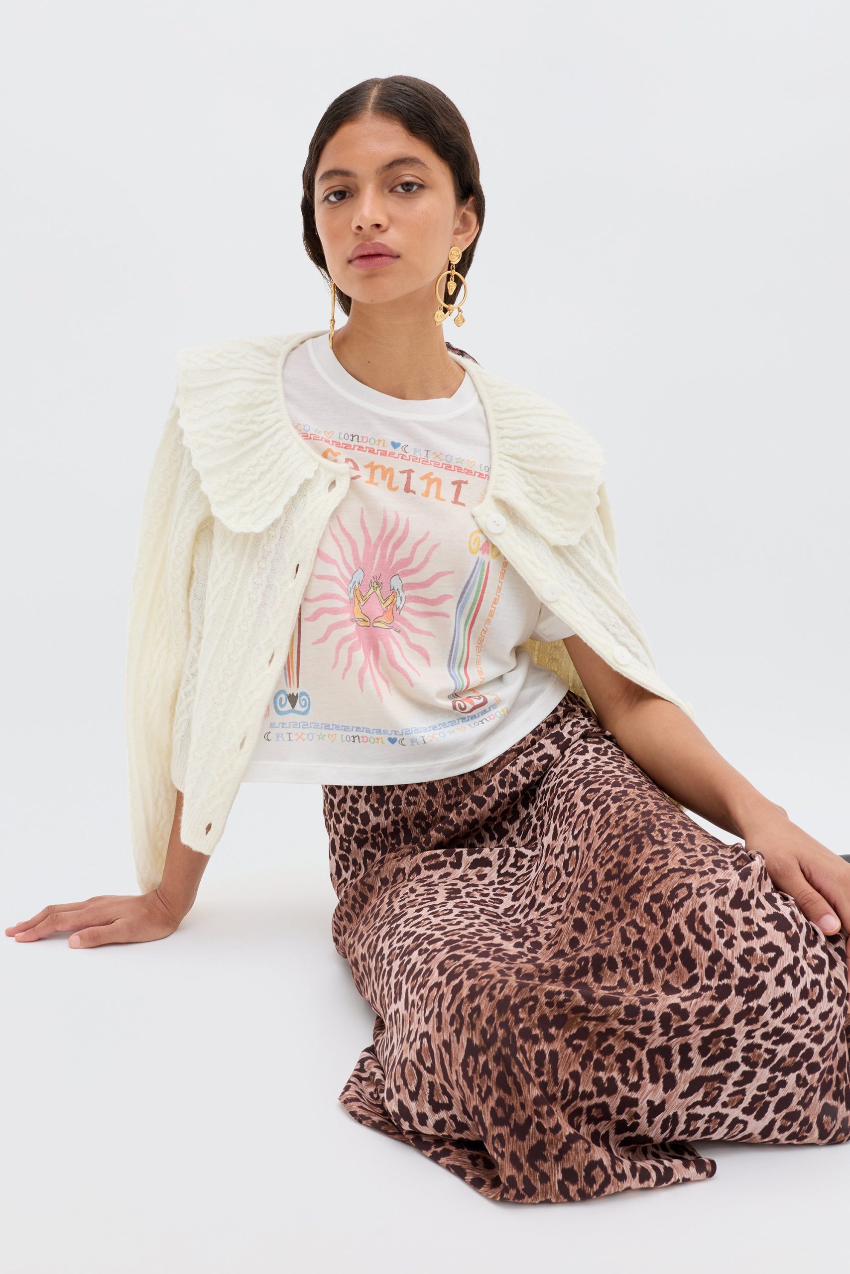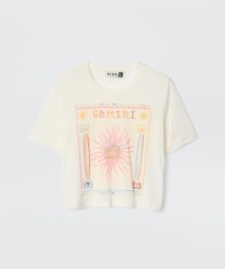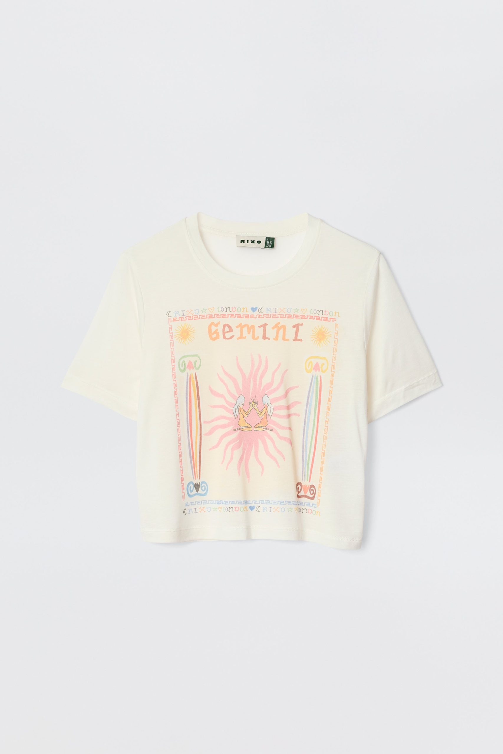 Product detailsDetailsOur Co-founder, Orlagh, sketched this Gemini illustration by hand so each Ria T-shirt is unique. It’s made from slightly sheer jersey with a cropped hem that’s easy to tuck into your favourite RIXO skirts.Fit