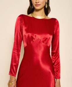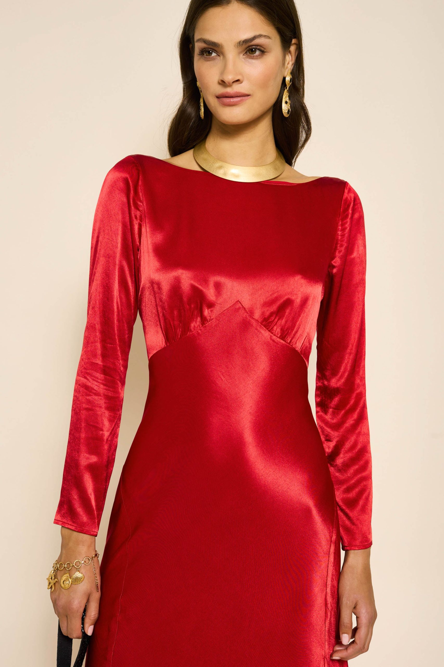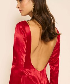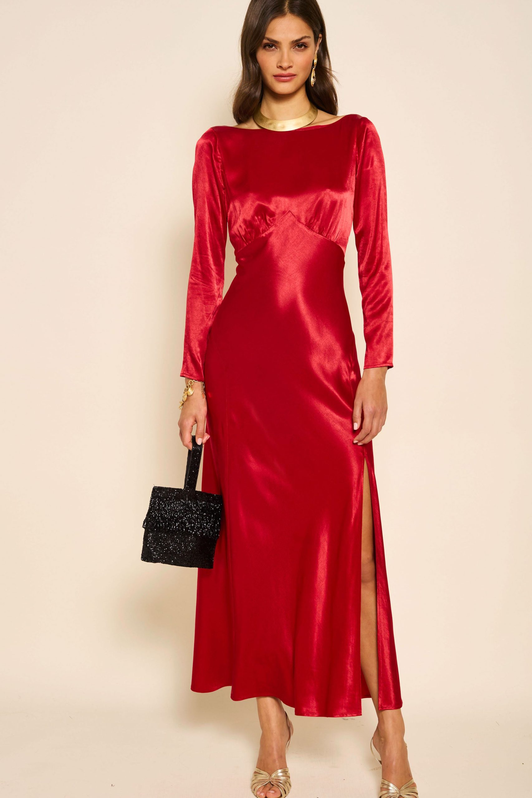 Product detailsDetailsElegant and striking at the same time, this satin Devina gown is a head-turning choice. It’s designed with an underbust seam and slim sleeves for definition, plus a low back and side slit that show a flash of skin. We have it in black velvet, too.Fit