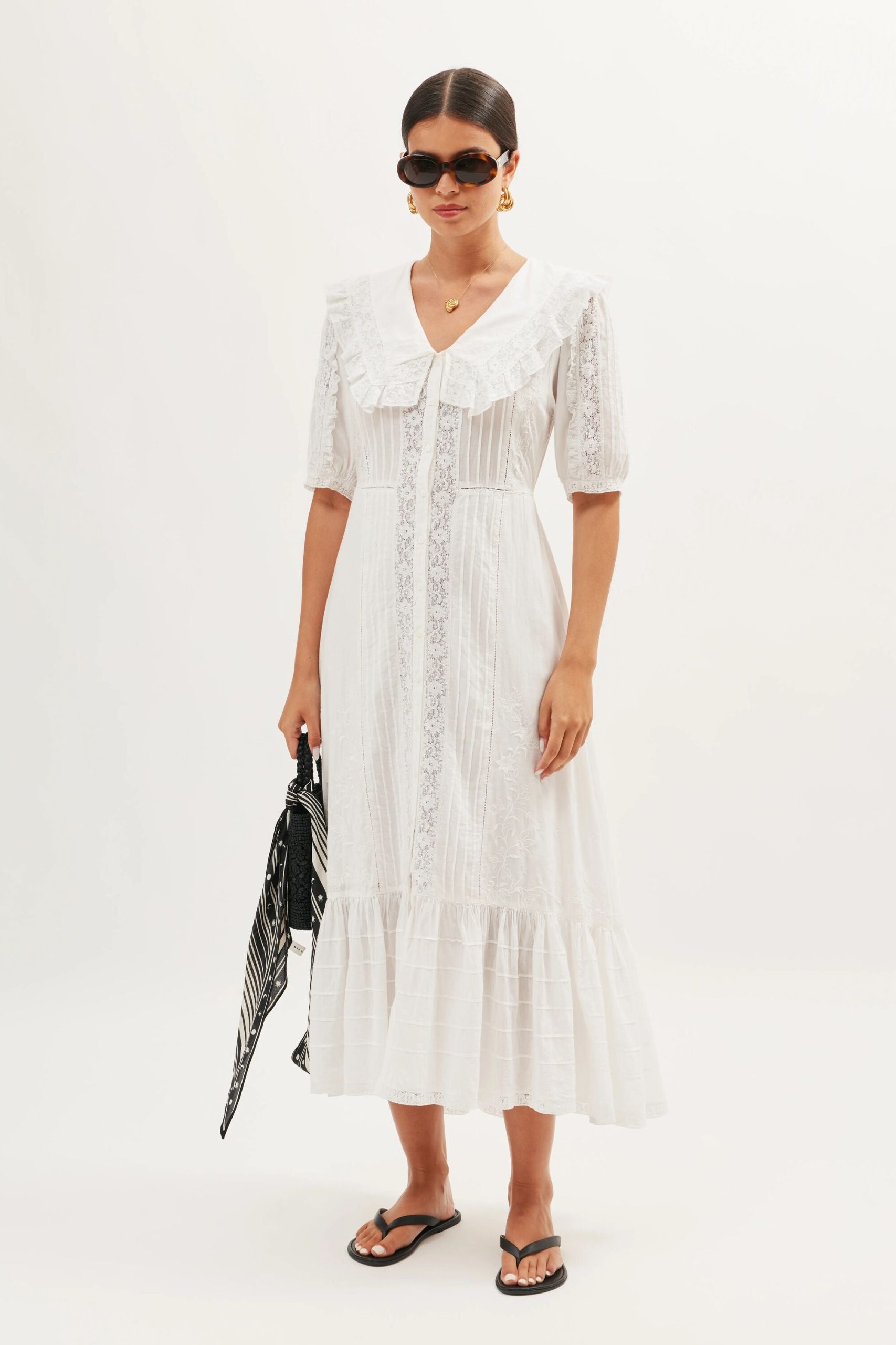 Product detailsDetailsAvailable in regular and petite. Edina is the big sister to our bestselling Ellery blouse. Its made from breezy cotton-voile with all the same gorgeous lace and added embroidery. Waist ties allow you to adjust the shape.Fit