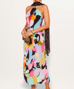 Product detailsDetailsMake an impression in our gorgeous Hayley dress. Its made from silk crepe de chine and comes with a detachable georgette scarf that looks so striking when it trails down the open back. The popper fastening makes it easy to remove.Fit