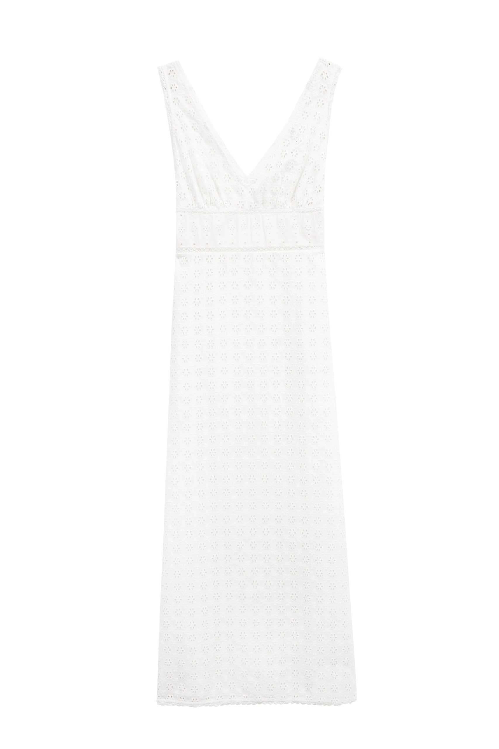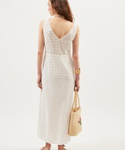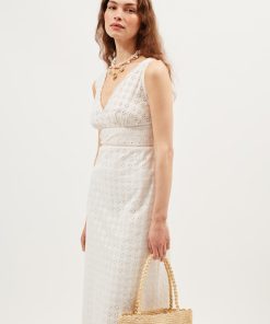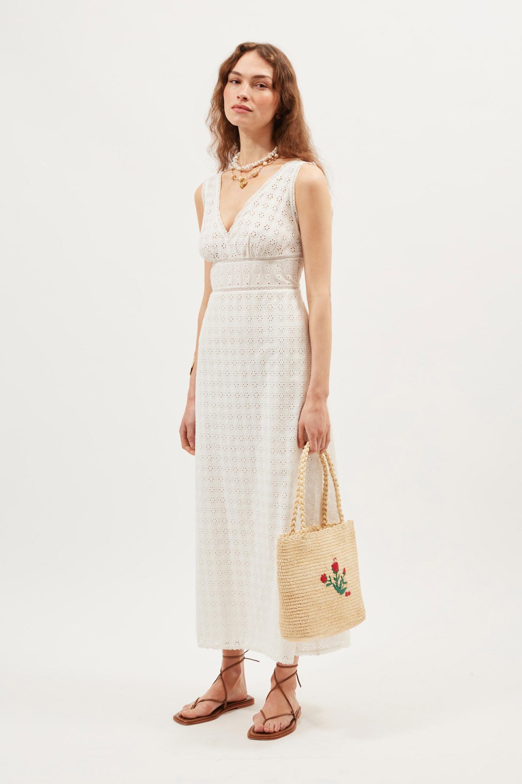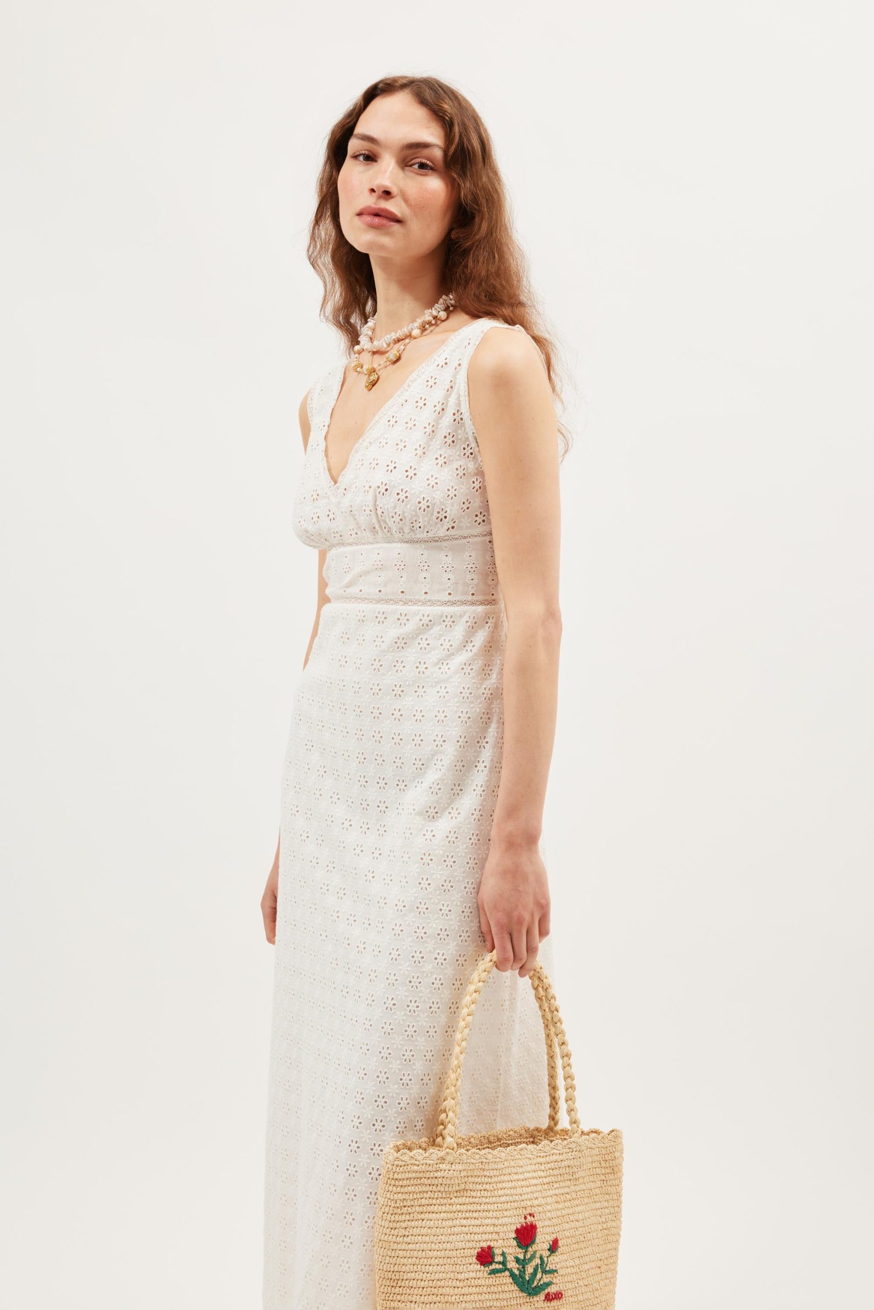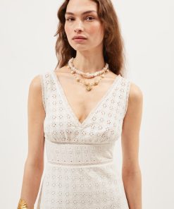 Product detailsDetailsJocelyn is similar to our iconic Sandrine dress but made from a summery cotton broderie anglaise fabric. Dress it up for summer events or wear it as an everyday favourite.Fit
