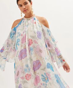 Product detailsDetailsMeet Niara, a striking gown for every occasion. Crafted from lightweight crinkled chiffon, this romantic silhouette features a halter neckline, cascading ruffled sleeves and offers fluid movement. For an effortless finishing touch, style yours with our Nolana gold earrings.Fit