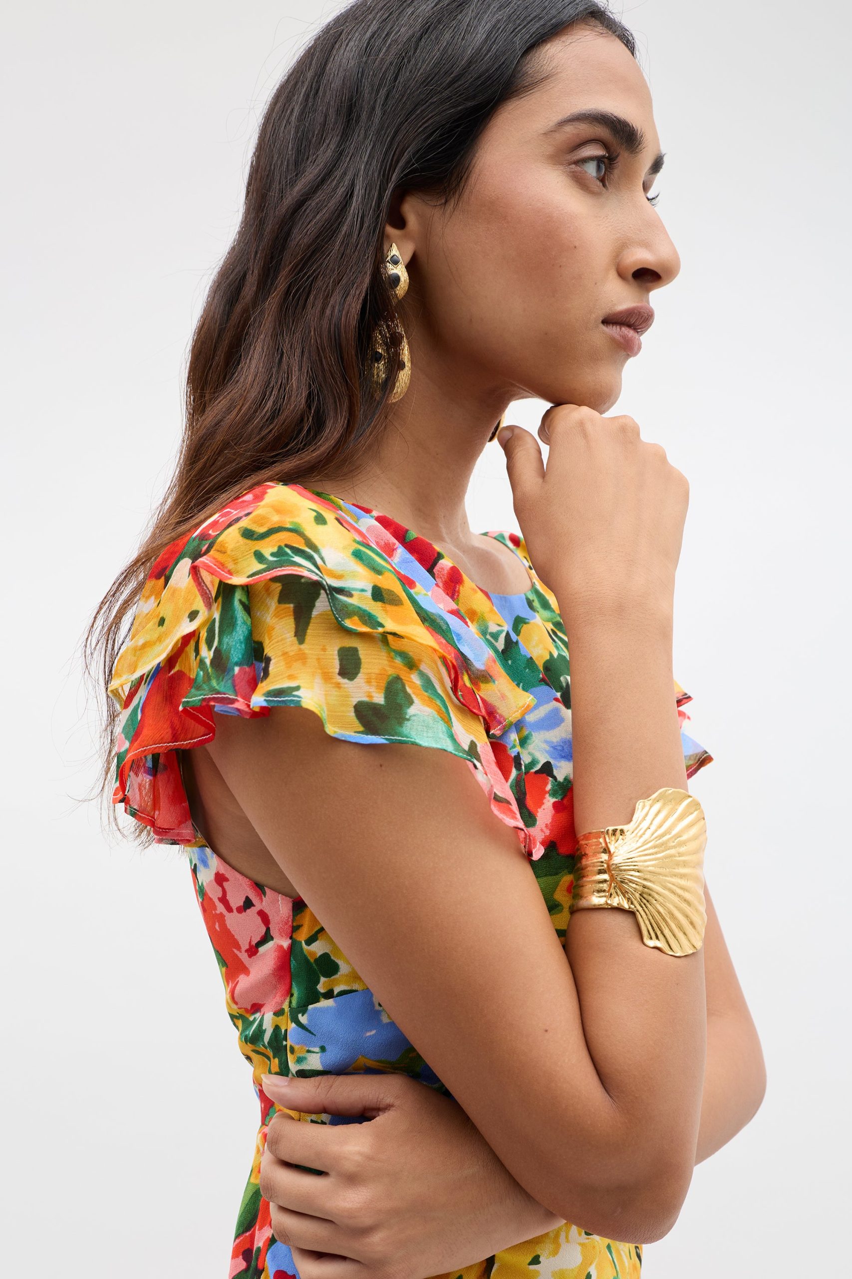 Product detailsDetailsWe love our shell jewellery year-round and this hand-carved Salene cuff is a new favourite. It’s crafted from 18-karat gold-plated brass with an antique finish and RIXO engraving on the inside.Fit